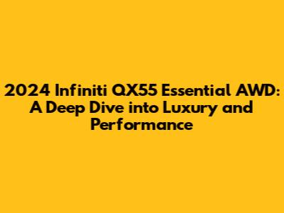 Now, let's talk about what's under the hood! The 2024 Infiniti QX55 Essential AWD is powered by a spirited 2.0-liter turbocharged four-cylinder engine, delivering a punchy 268 horsepower. This engine is paired with a continuously variable transmission (CVT), which provides smooth and efficient power delivery. The AWD system ensures excellent grip and stability, especially in less-than-ideal weather conditions. The QX55 offers a balanced driving experience. It's not a sports car, but it's certainly not a slouch either. The acceleration is brisk, and the handling is responsive. The QX55 feels confident on the road, whether you're cruising on the highway or navigating city streets. The QX55's performance is a major selling point. The engine is powerful and responsive, and the transmission provides smooth and efficient power delivery. The QX55 is a pleasure to drive, thanks to its responsive engine, smooth transmission, and well-tuned suspension. The QX55 is also packed with technology, including a dual-screen infotainment system, Apple CarPlay and Android Auto compatibility, and a host of driver-assistance features. The QX55 is a great choice for anyone looking for a luxurious and tech-savvy crossover. The QX55 is a vehicle that combines luxury and performance. The QX55 is a great choice for anyone looking for a stylish and capable crossover. The QX55 is a vehicle that will turn heads. The QX55 is a vehicle that will make you feel good. The QX55 is a vehicle that is sure to please. The exterior design is one of the most appealing aspects of the QX55. It's a head-turner, and you'll be the envy of your friends and neighbors. The designers did a great job with the QX55. The QX55 is a work of art. The QX55 is a vehicle that combines luxury and performance. The QX55 is a great choice for anyone looking for a stylish and capable crossover. The QX55 is a vehicle that will turn heads. The QX55 is a vehicle that will make you feel good. The QX55 is a vehicle that is sure to please. The exterior design is one of the most appealing aspects of the QX55. It's a head-turner, and you'll be the envy of your friends and neighbors. The designers did a great job with the QX55. The QX55 is a work of art. The QX55 is a vehicle that combines luxury and performance. The QX55 is a great choice for anyone looking for a stylish and capable crossover. The QX55 is a vehicle that will turn heads. The QX55 is a vehicle that will make you feel good. The QX55 is a vehicle that is sure to please.