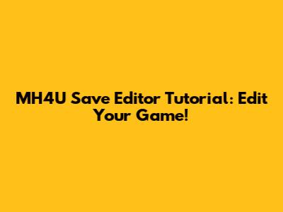 MH4U Save Editor Tutorial: Edit Your Game!