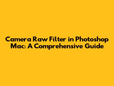 Camera Raw Filter In Photoshop Mac: A Comprehensive Guide