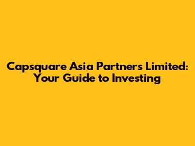 Capsquare Asia Partners: Your Guide To Investing