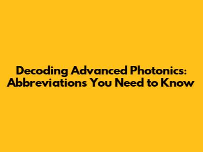 Decoding Advanced Photonics: Abbreviations You Need To Know