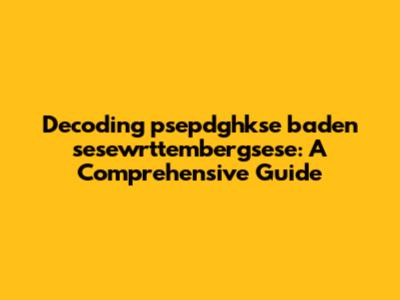 Decoding Psepdghkse Baden Sesewrttembergsese: A Comprehensive Guide
