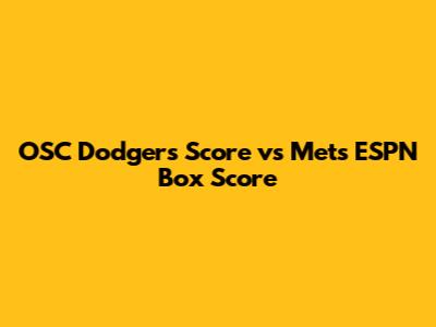 Dodgers Vs. Mets: OSC Score And ESPN Box Score