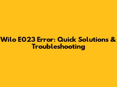 Wilo E023 Error: Quick Solutions & Troubleshooting