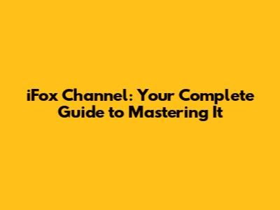 IFox Channel: Your Complete Guide To Mastering It