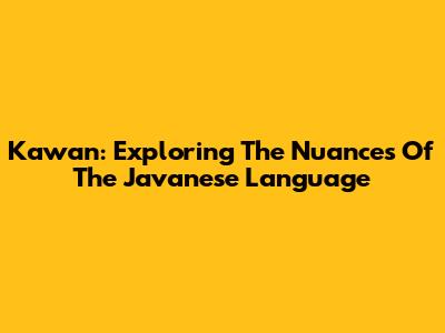 Kawan: Exploring The Nuances Of The Javanese Language