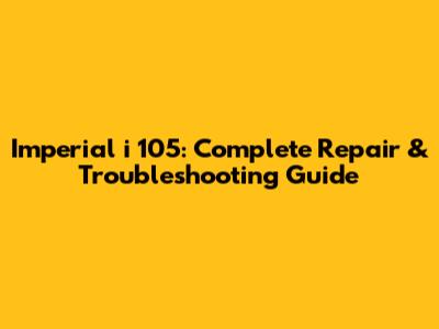Imperial I 105: Complete Repair & Troubleshooting Guide