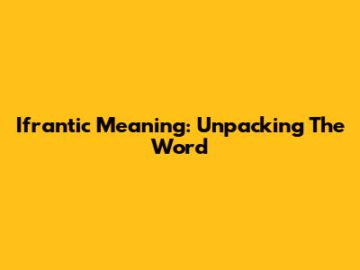 Ifrantic Meaning: Unpacking The Word