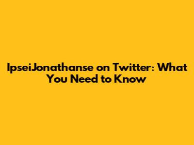 IpseiJonathanse On Twitter: What You Need To Know