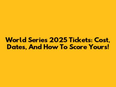 World Series 2025 Tickets: Cost, Dates, And How To Score Yours!