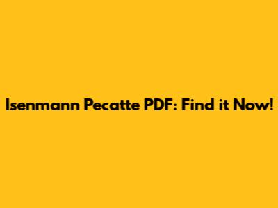 Isenmann Pecatte PDF: Find It Now!
