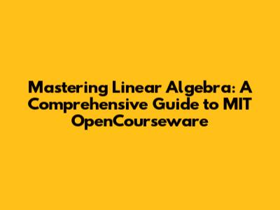 Hey everyone, let's dive into the fascinating world of linear algebra! Specifically, we're going to explore how you can master this crucial subject using the fantastic resources available through MIT OpenCourseware (OCW). Whether you're a student, a professional looking to brush up on your skills, or just a curious mind, this guide is designed to help you navigate the landscape of MIT OCW's linear algebra offerings and unlock the power of this essential mathematical tool. Buckle up, because we're about to embark on a journey that'll transform the way you see vectors, matrices, and everything in between!