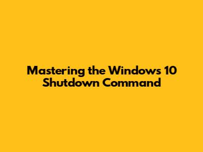 Hey everyone! Today, we're diving deep into a super useful, yet often overlooked, tool in Windows 10: the shutdown command. You know, that little command prompt trick that lets you control when your computer powers off, restarts, or even logs you out? It's way more powerful than just clicking that little Start menu button, guys, and once you get the hang of it, you'll wonder how you ever lived without it. Whether you're a tech wizard or just someone who wants to automate tasks and save time, understanding the shutdown command is a game-changer. We're going to break down everything you need to know, from the basic syntax to some seriously cool advanced options that will make you feel like a command-line ninja. So, grab your favorite beverage, settle in, and let's get this digital party started!