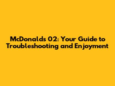 McDonald's 02: Your Guide To Troubleshooting And Enjoyment