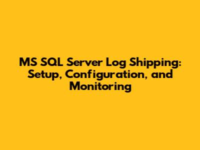 MS SQL Server Log Shipping: Setup, Configuration, And Monitoring
