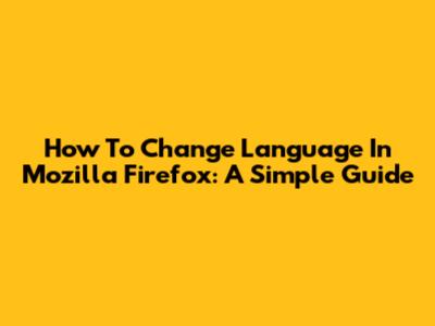 How To Change Language In Mozilla Firefox: A Simple Guide