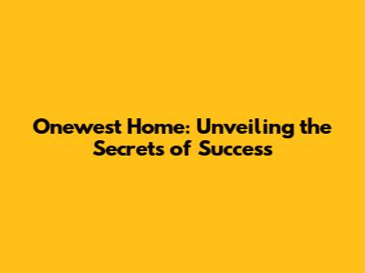 Onewest Home: Unveiling The Secrets Of Success
