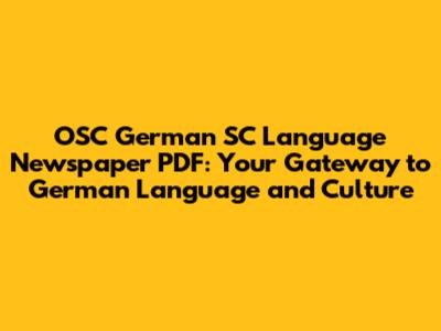 Are you looking for a resource that immerses you in the German language and culture while keeping you updated on current events? Look no further! The OSC German SC Language Newspaper PDF offers a fantastic way to improve your language skills, stay informed, and connect with the German-speaking community. In this comprehensive guide, we'll delve into what makes this newspaper so valuable, how to access it in PDF format, and tips for maximizing its benefits for language learning and cultural understanding.