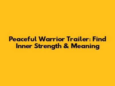 Hey guys! Let's dive into the inspirational world of "Peaceful Warrior." If you're on a quest for inner peace, personal growth, or just a movie that'll make you think, you've probably stumbled upon the "Peaceful Warrior" trailer. This film, based on Dan Millman's semi-autobiographical novel, is more than just a sports drama; it's a journey of self-discovery, resilience, and understanding the present moment. Let's break down what makes this trailer so captivating and why the movie continues to resonate with audiences seeking a deeper understanding of life.