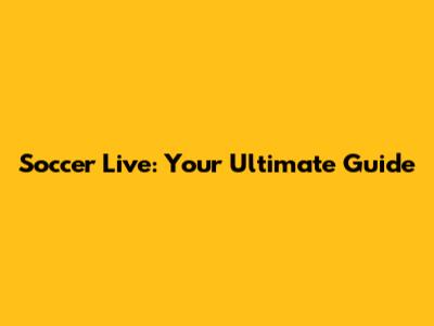 Soccer Live: Your Ultimate Guide