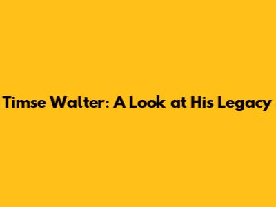Timse Walter: A Look At His Legacy