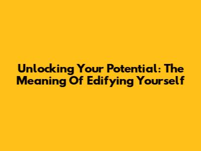 Unlocking Your Potential: The Meaning Of Edifying Yourself