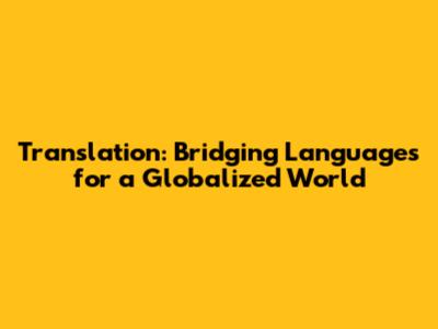 Translation: Bridging Languages For A Globalized World