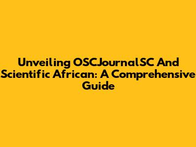 Unveiling OSCJournalSC And Scientific African: A Comprehensive Guide