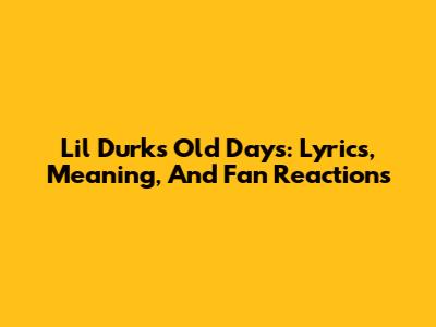 Lil Durk's 'Old Days': Lyrics, Meaning, And Fan Reactions