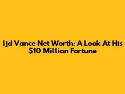 Ijd Vance Net Worth: A Look At His $10 Million Fortune