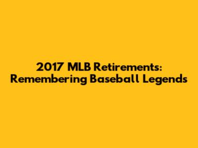 2017 MLB Retirements: Remembering Baseball Legends
